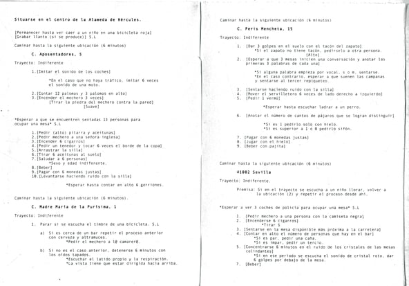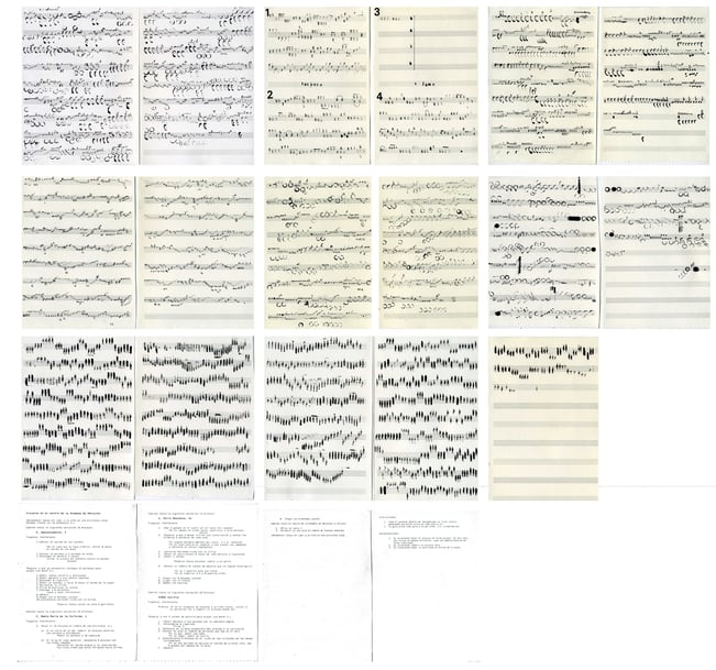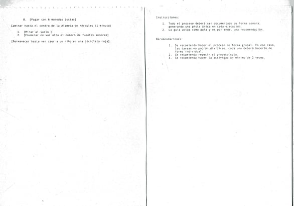 La serie de partituras busca sublimar el paisaje sonoro contemporáneo a la escena artística. Se enfrentan de esta manera los ambientes sonoros como objetos y se elaboran a partir de ellos una interpretación plástica, donde entran en juego múltiples fuentes sonoras. Desde la premisa del espacio público, se elabora un conjunto de partituras que describen el recuerdo a partir de lo intangible: la fugacidad del sonido y la reconstrucción del entorno que nos rodea.