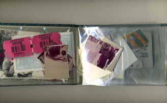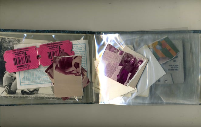 Jaramagos es una pieza de carácter grafico-instalativo que profundiza en la re-representación de la memoria colectiva a partir de los objetos repudiados. Este álbum resulta en una pieza de carácter non-finito que reúne fotos, boletos, páginas etc. encontrados en la calle, los cuales son testimonio del quehacer diario, asumido en un rastro de piltrafa que conforman nuestra identidad. Esta propuesta medita en torno al imaginario colectivo como un objeto-quimera donde los fragmentos individuales se desnaturalizan del agente del que forman parte de manera primitiva para dar lugar a esa especie de tercera forma-recuerdo equidistante entre todas las experiencias individuales. Todos los objetos han sido encontrados tirados en la calle: en contenedores, adoquines, parterres... Son los retales vitales de los que nos despojamos los que dan forma y solidez a la experiencia y terminan construyendo esa quimera nostálgica, un atlas de esquelas en vida.